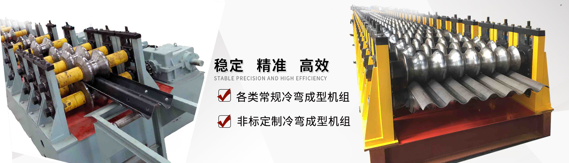 主要產品有抗震支架生產設備,高速公路鋼護欄板生產設備,涵洞波紋板成型機組,光伏支架生產設備,沖孔腳踏板生產線、電梯型材系列設備、電纜橋架系列設備、立體車庫系列設備、貨架型材系列設備、電氣柜型材系列設備等專用冷彎設備。有較強的生產經驗和技術力量,積累了大量豐富的冷彎設備研發和制造經驗。
